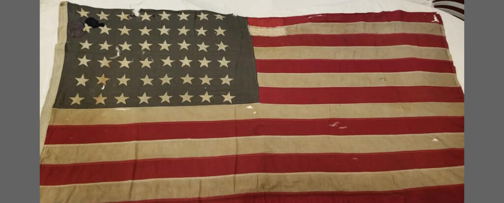 Shawn Pease brought this wonderful World War I-era American flag to us. According to his grandfather (who served in the 101st Infantry of the famed “Yankee” Division), the flag “flew in France during the War”. Note the period repairs and patches including two with vintage silk. Shawn and I are figuring out a plan to […]